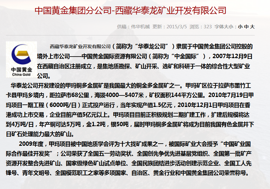 合作單位:中國黃金集團分公司-西藏華泰龍礦業(yè)開